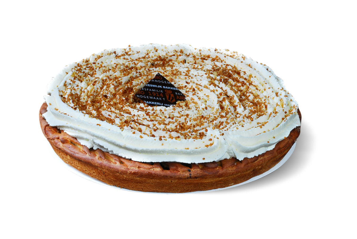 tarwebloem, slagroom (melk), appel, suiker, water, hazelnootstukjes (hazelnoten), plantaardig vet(plantaardig vet (palm), geheel gehard en plantaardig vet (palmpit), plantaardig vet (kokos), geheel gehard en plantaardig vet (palm)), plantaardig olie(plantaardige olie (raapzaad)), melkpoeder, verdikkingsmiddel(E412, E1422, E466), gist, bakkerszout, dextrose, appelstukjes, emulgator(E322, E471, E472e, E481), weipoeder (melk), stabilisator(E407), plantaardig vet (palm), moutmeel (tarwe), kruiden en specerijen (kaneel), caramel, veldbonenmeel, aroma, plantaardige olie (koolzaad), tarwegluten, vitamine(vitamine A, vitamine D3), zuurteregelaar(E330, E270), kleurstof(E160a), zout, tarwezetmeel, invertsuikerstroop, tarwemoutmeel, meelverbeteraar(E300, E920), appelvezel, glucosestroop, melkeiwit, plantaardige olie (zonnebloem), natuurlijk aroma